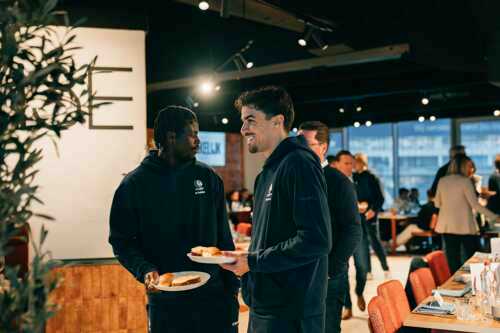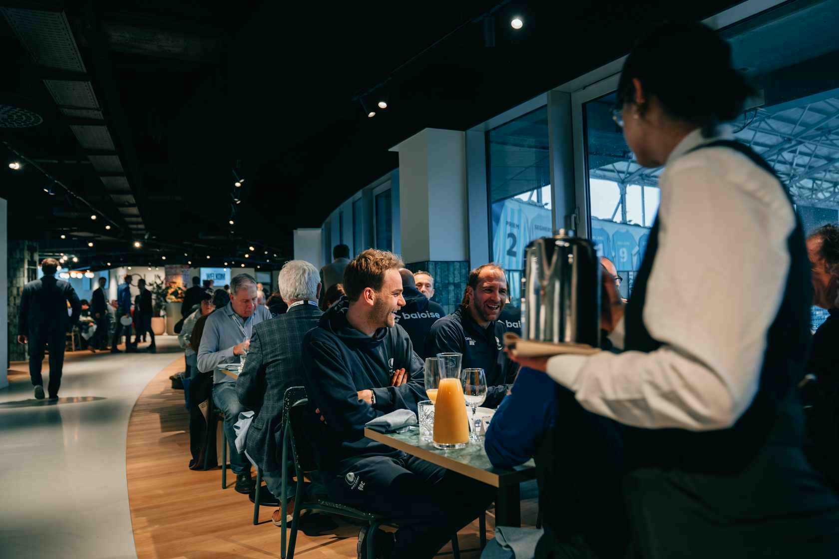 De ochtend begon met een warm welkom in de nieuwe horecaconcepten Hector en Tsuki op niveau 3 van de hoofdtribune. In een ontspannen sfeer sloten ook spelers en staf van de A-kern aan, waarna iedereen plaatsnam in SMASH en WISEGUY voor een uitgebreid ontbijt. De vernieuwde horecabeleving op niveau 3 werd duidelijk gesmaakt en vormde het ideale decor voor ontmoeting en gesprek.