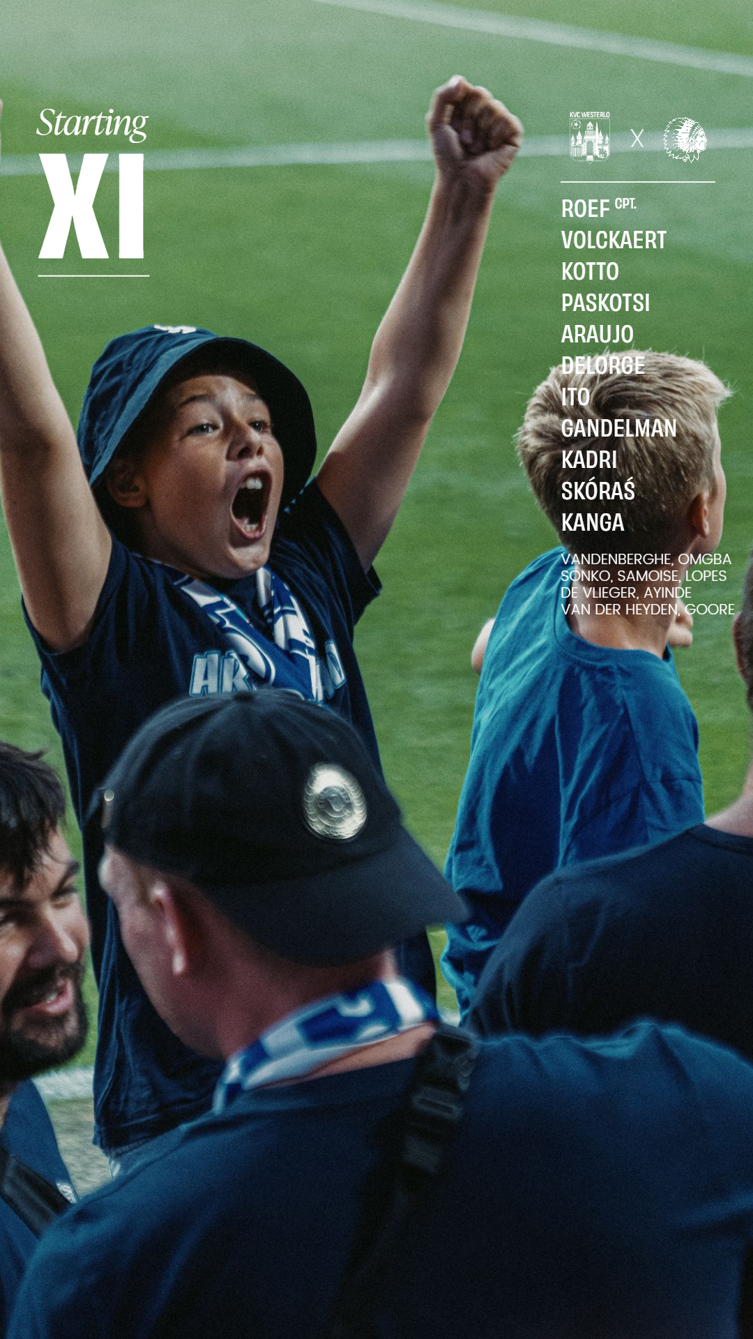 22-11-2025 - 18:15De opstelling van Westerlo: Jungdal, Kimura, Sayyadmanesh, Sakamoto, Yow, Reynolds, Mbamba, Haspolat, Bayram, Piedfort, Ferri